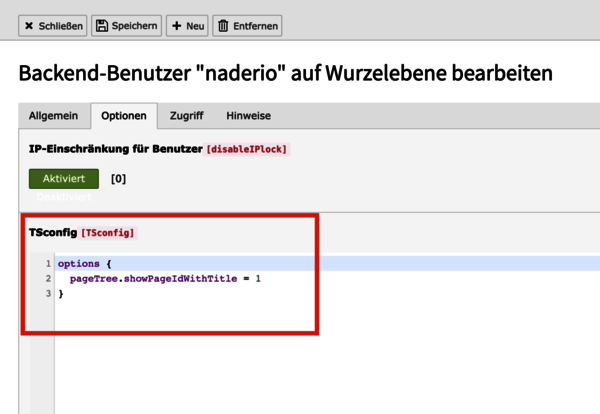 A little TSconfig is now added to the user. You can find this in the Options tab and then in the TSconfig field.